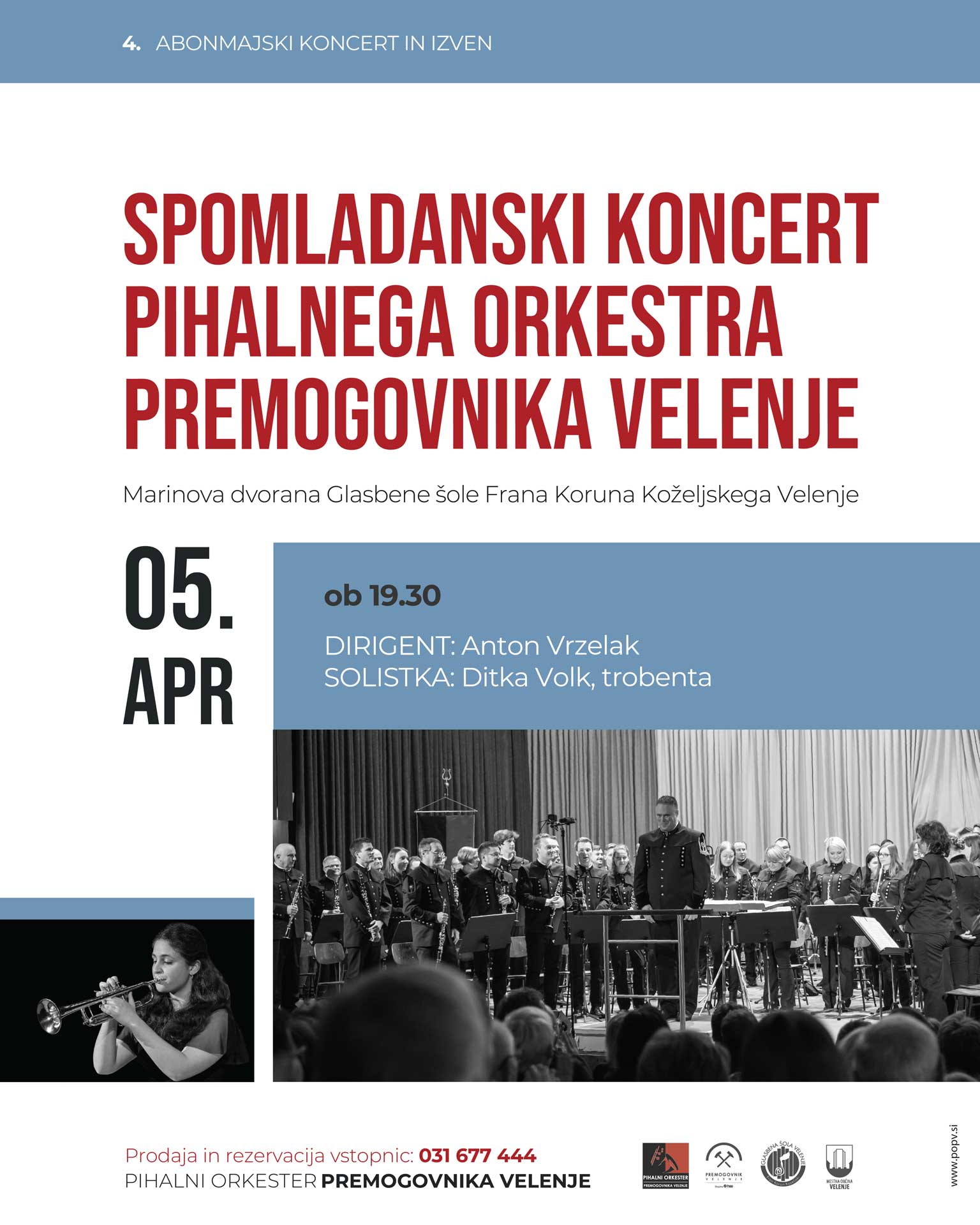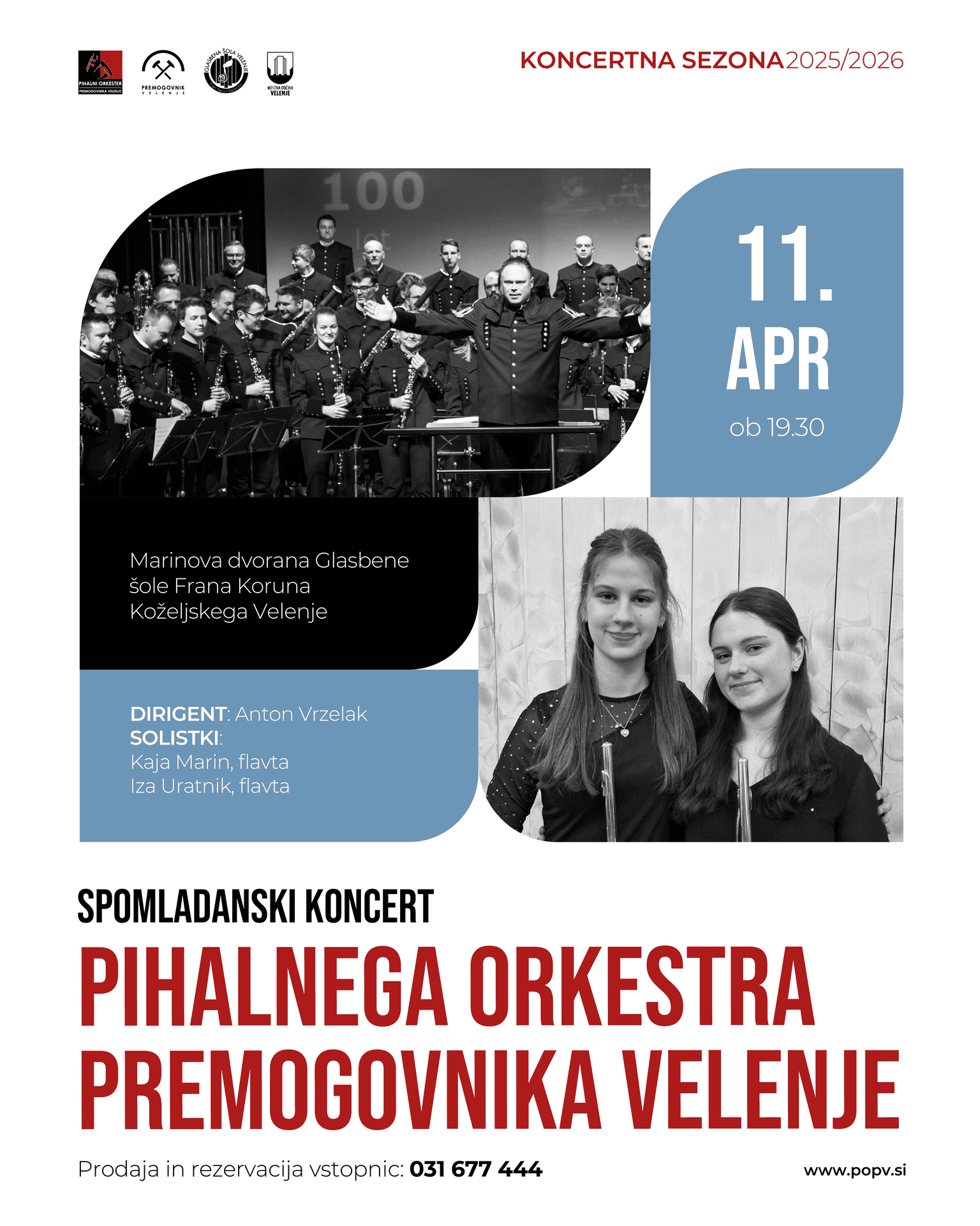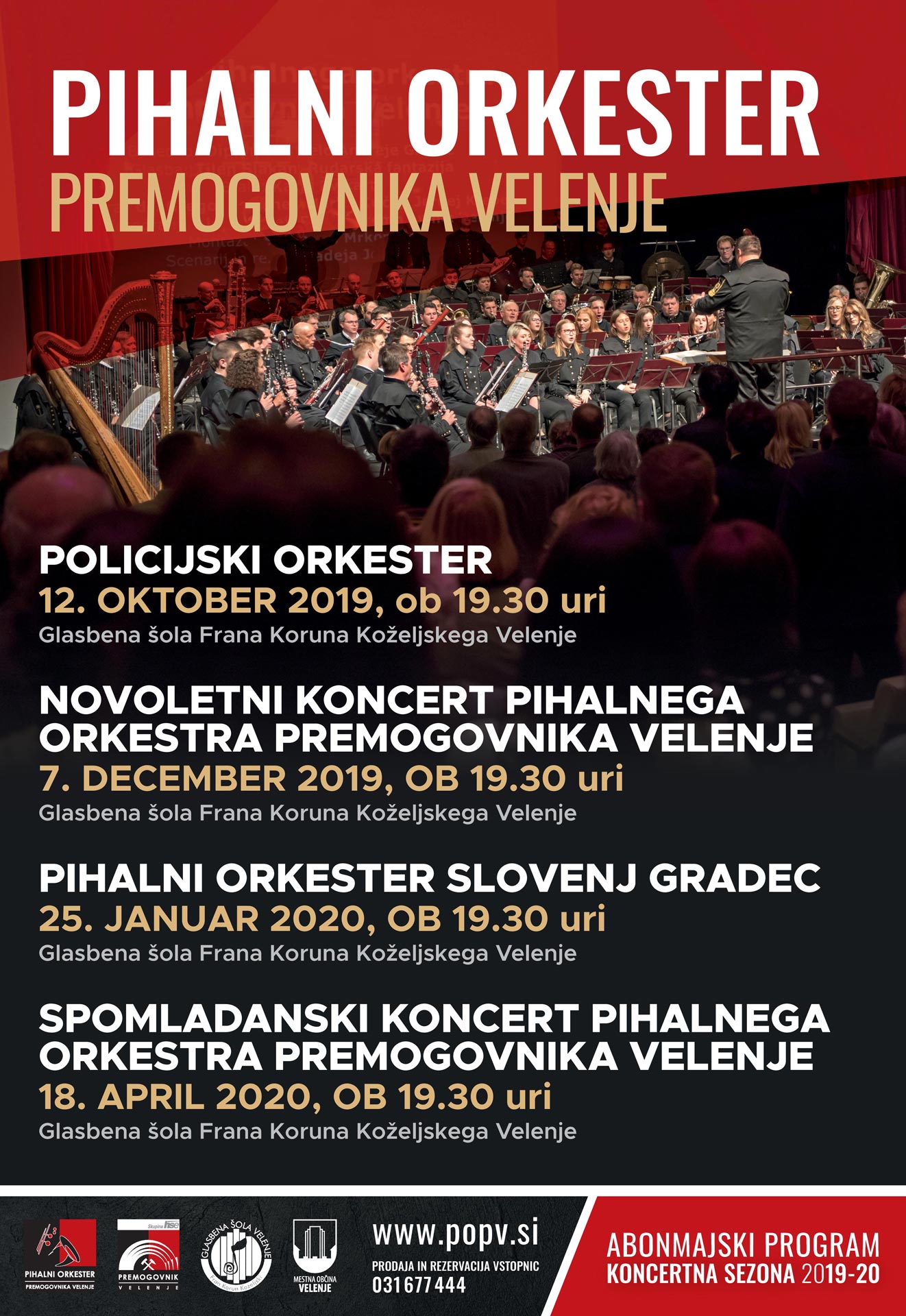 kljub rahljanju nekaterih ukrepov zaradi epidemije koronavirusa, s katerim se še vedno soočamo tudi v Sloveniji, zbiranje ljudi na javnih prostorih zaprtega tipa, kjer se zbira več kot 100 ljudi, še vedno ni dovoljeno, zato odpovedujemo Spomladanski koncert Pihalnega orkestra Premogovnika Velenje, ki je bil napovedan za soboto, 18. aprila 2020, ob 19.30 uri, z nadomestnim terminom v soboto, 23. maja 2020, ob 19. 30 uri v Glasbeni šoli Frana Koruna Koželjskega Velenje.