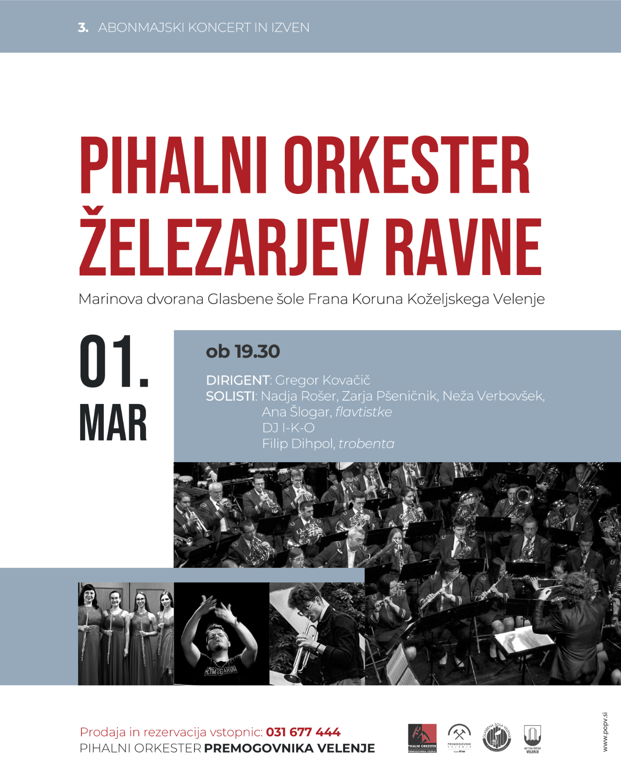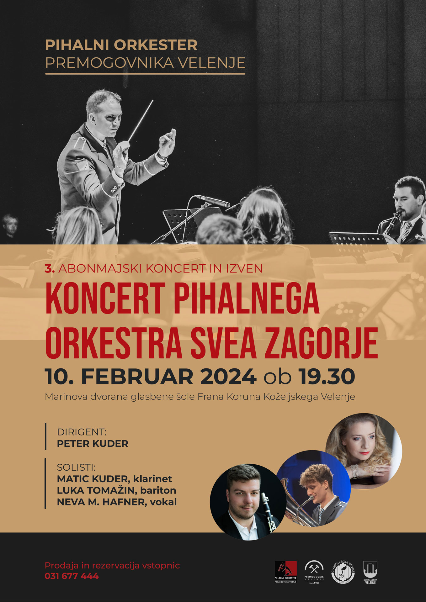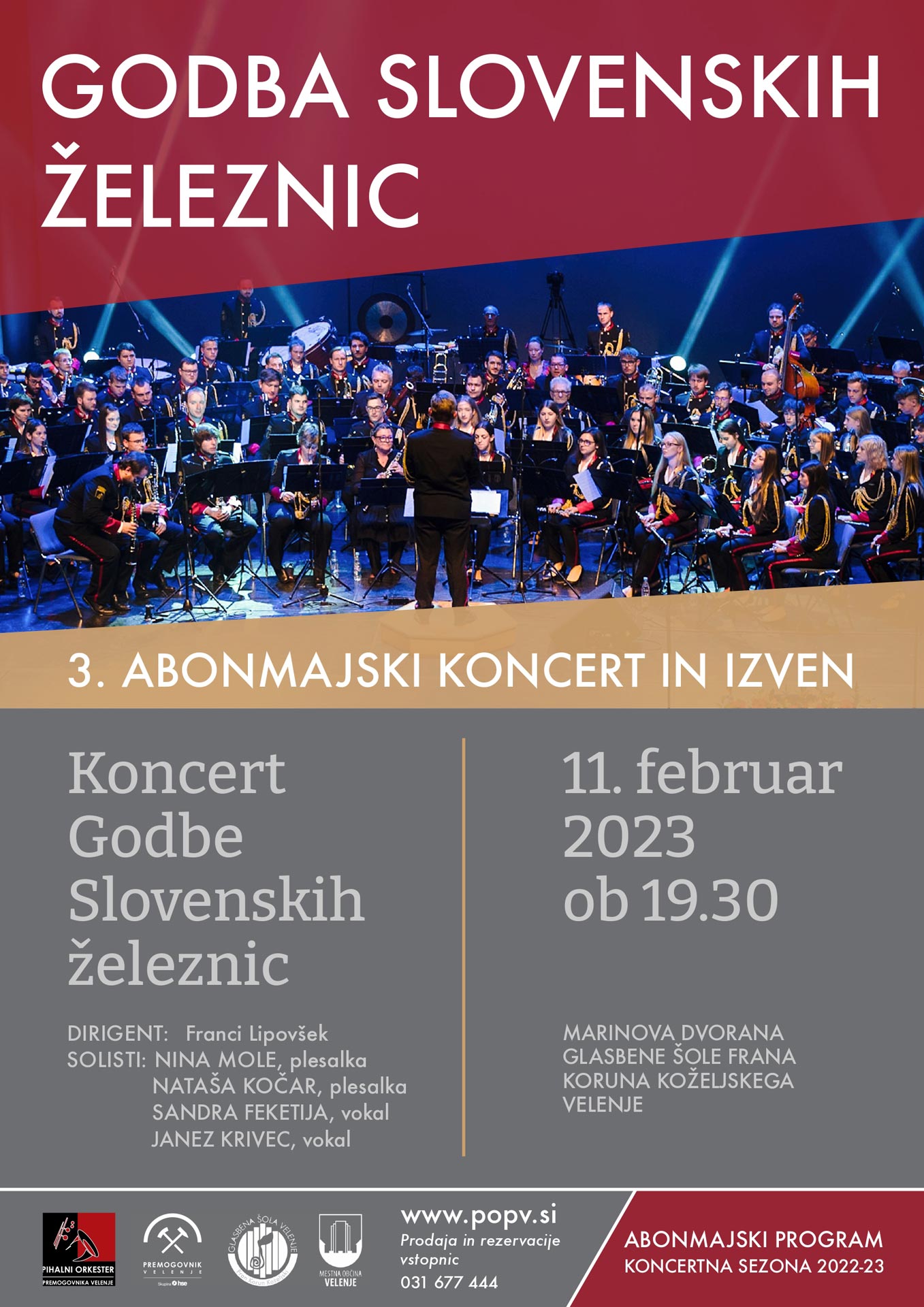 Vljudno vabljeni na naš 3. abonmajski koncert, ki bo v soboto, 10. februarja, ob 19.30 v Marinovi dvorani Glasbene šole Frana Koruna Koželjskega Velenje. Z nami bo Pihalni orkester SVEA Zagorje.