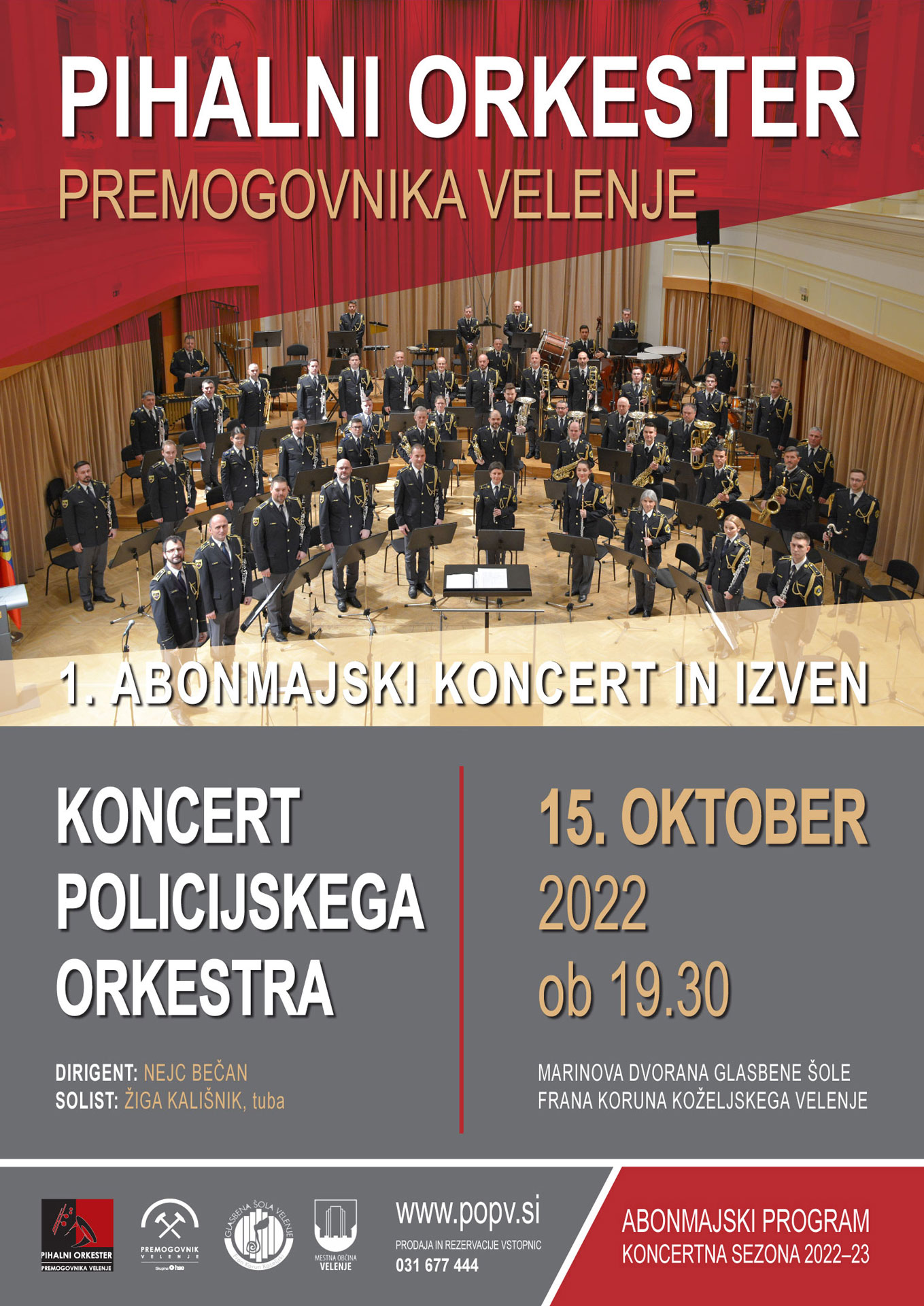 Bliža se 1. abonmajski koncert te sezone kjer bo nastopil Policijski orkester pod taktirko Nejca Bečana. Koncert bo v soboto, 21. oktobra ob 19.30 v Marinovi dvorani Glasbene šole Frana Koruna Koželjskega Velenje. Kot solist na klarinetu se bo predstavil Aljoša Pavlinc.